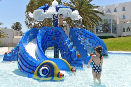 Piscine extérieure avec bassin et aire de jeux pour enfants